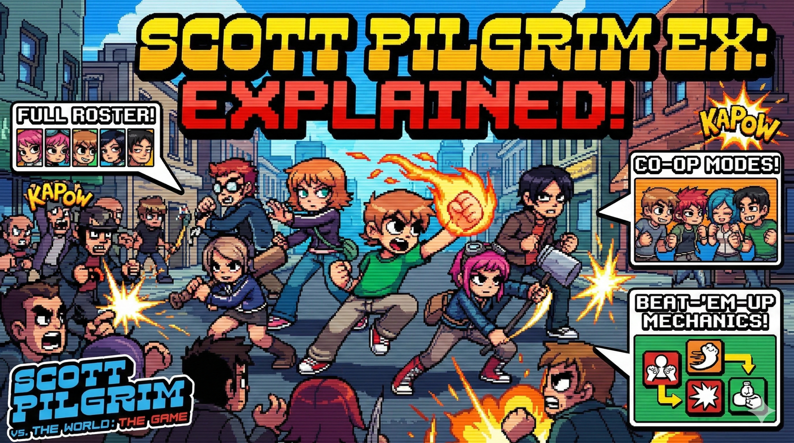 If you have touched the original Scott Pilgrim vs. the World: The Game or modern beat‑’em‑ups like TMNT: Shredder’s Revenge, EX sits comfortably somewhere between them. It keeps the chunky pixel art and band‑brawler charm, but it abandons the traditional linear level structure for a more open-world, River City Ransom-style Toronto.